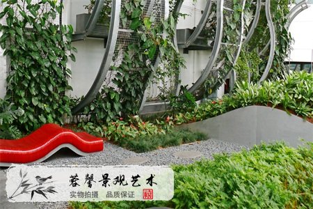即利用模塊化構(gòu)件種植植物實現(xiàn)垂直綠化。將方塊形、菱形、圓形等幾何單體構(gòu)件,通過合理搭接或綁縛固定在不銹鋼或木質(zhì)等骨架上,形成各種景觀效果。