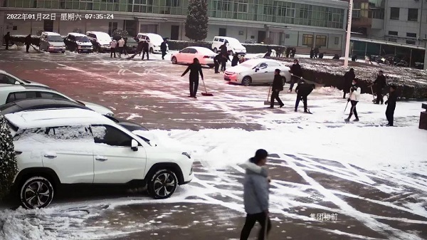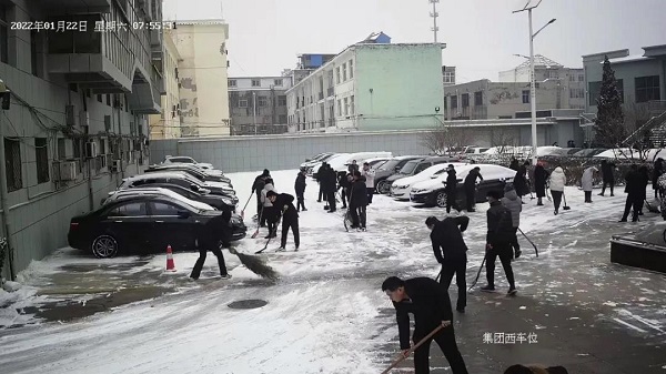 今早,上班時間還沒到,集團大院各公司員工就自發(fā)組織起來,提前來到單位掃雪。最先到達的是集團本部的冀英超、郭振超,隨后是房地產(chǎn)公司,他們在昨天晚上就已經(jīng)短信通知全體員工早上提前到公司掃雪,隨后圣春、供暖和國際貿(mào)易公司員工紛紛加入清掃戰(zhàn)場。大家你爭我搶、默契配合,形成一派熱火朝天的勞動場面,在最冷的大寒節(jié)氣,大家臉上掛滿了熱氣騰騰的汗珠。通過這次掃雪勞動,充分展現(xiàn)了春風員工吃苦耐勞、朝氣蓬勃、銳意進取的精神面貌。