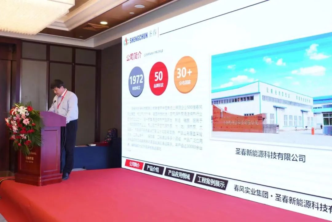 會上,圣春新能源駐陜西分公司總經(jīng)理張斌做了題為《打贏藍(lán)天保衛(wèi)戰(zhàn),清潔取暖改造之——圣春在行動!》的主旨演講,分別從企業(yè)規(guī)模優(yōu)勢、技術(shù)創(chuàng)新、清潔供熱新產(chǎn)品新技術(shù)、成功案例經(jīng)驗分享等方面進(jìn)行了詳細(xì)介紹。