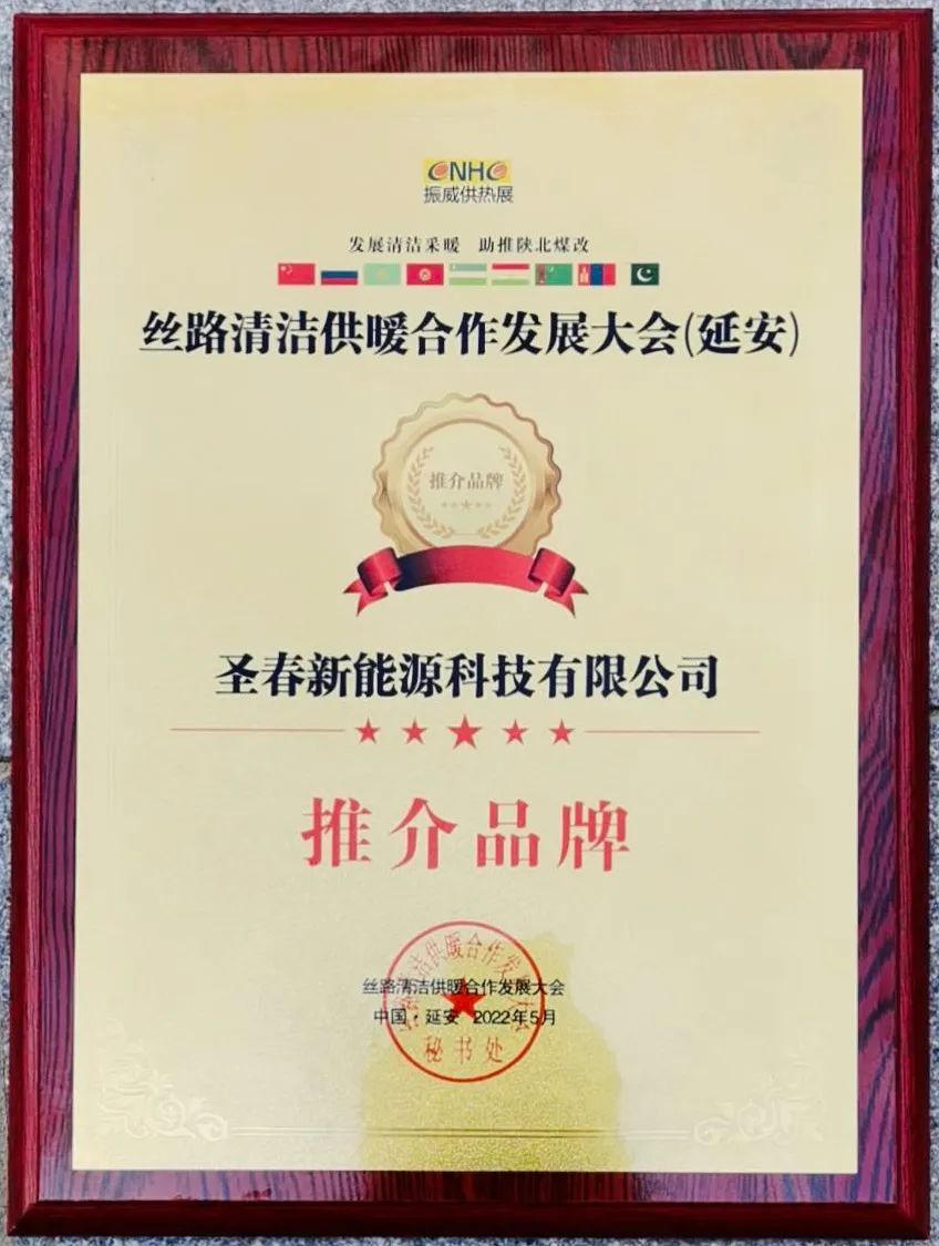大會期間還進(jìn)行了《2022絲路(清潔供暖)推介品牌》頒獎儀式,圣春新能源憑借先進(jìn)的產(chǎn)品技術(shù)和優(yōu)異的清潔供熱項目運(yùn)營能力一舉獲得“絲路清潔供暖推介品牌“榮譽(yù)獎項。