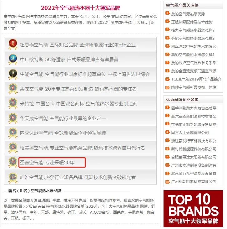 【喜報】圣春空氣能強勢入選“空氣能熱泵行業(yè)