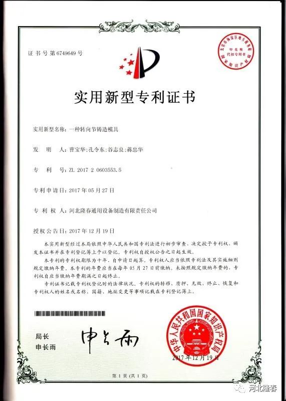 日前,國家知識產(chǎn)權(quán)局公告,中鑄協(xié)監(jiān)事長單位--春風(fēng)集團(tuán)河北隆春通用設(shè)備制造有限責(zé)任公司再次獲得一項發(fā)明專利,這已是該公司今年獲得的第八項專利。