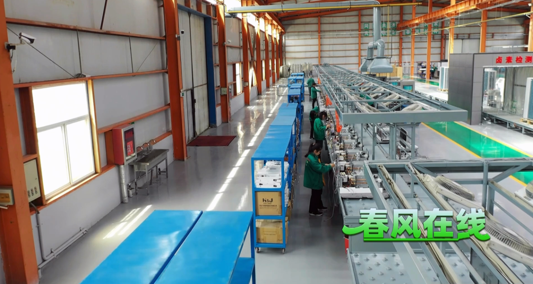走進(jìn)春風(fēng)新能源公司眼前是一派熱火朝天的繁忙景象,投資5000余萬(wàn)元的兩條數(shù)字化大型熱泵生產(chǎn)流水線正開(kāi)足馬力滿負(fù)荷生產(chǎn),工人們正有條不紊地操作設(shè)備,為生產(chǎn)加班加點(diǎn)趕進(jìn)度,一批批高精專的新產(chǎn)品等待著打包發(fā)貨,訂單已排到了明年5月份。