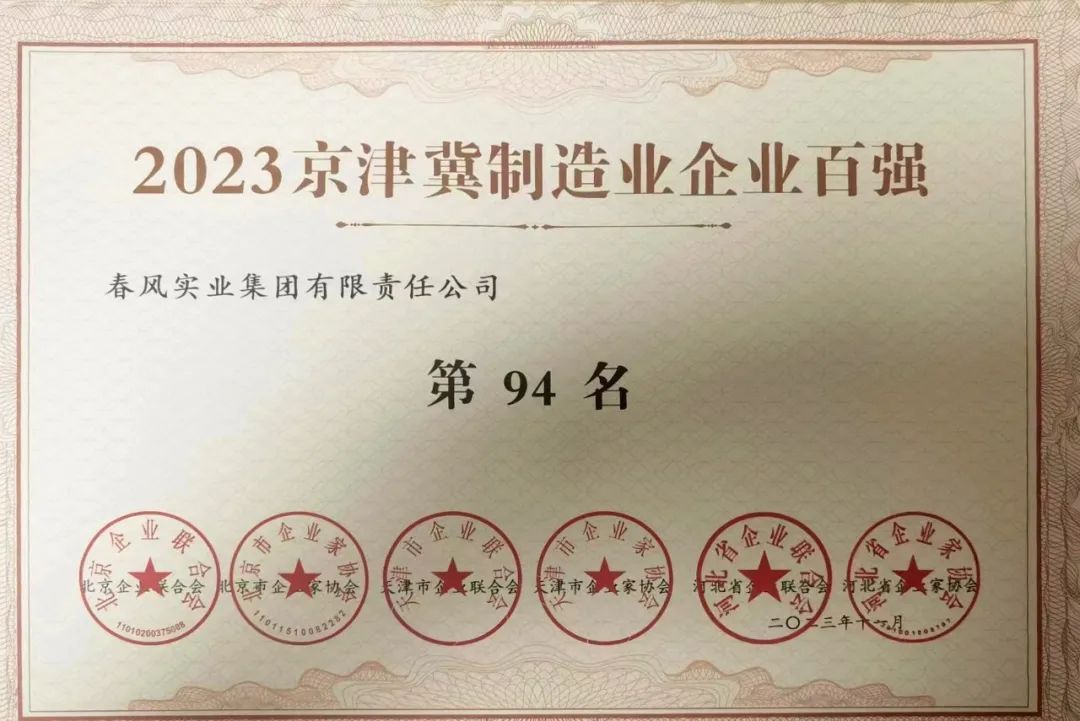 喜報(bào)丨春風(fēng)實(shí)業(yè)集團(tuán)榮獲“2023 京津冀制造業(yè)企業(yè)