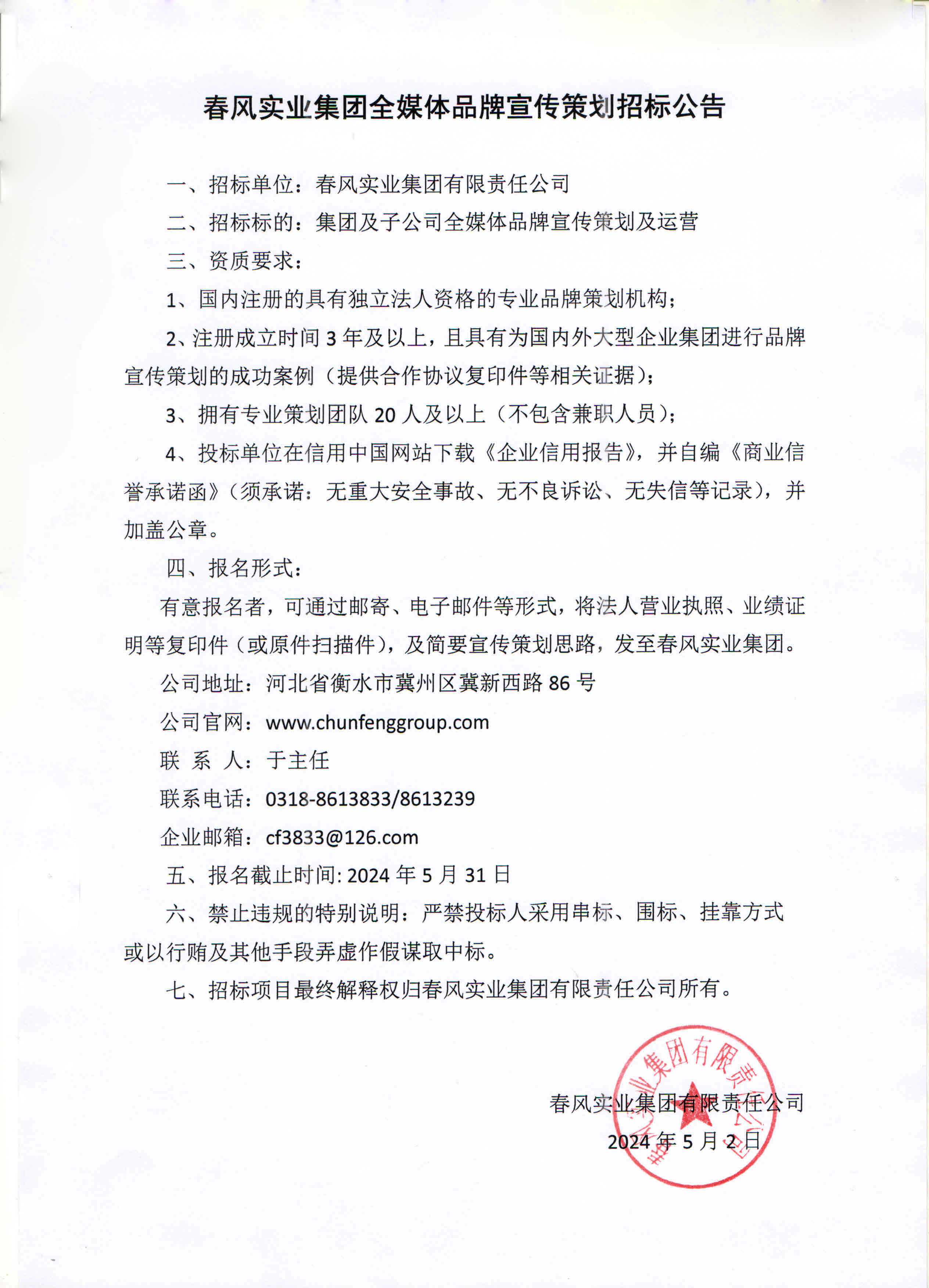 春風(fēng)實(shí)業(yè)集團(tuán)全媒體品牌宣傳策劃招標(biāo)公告