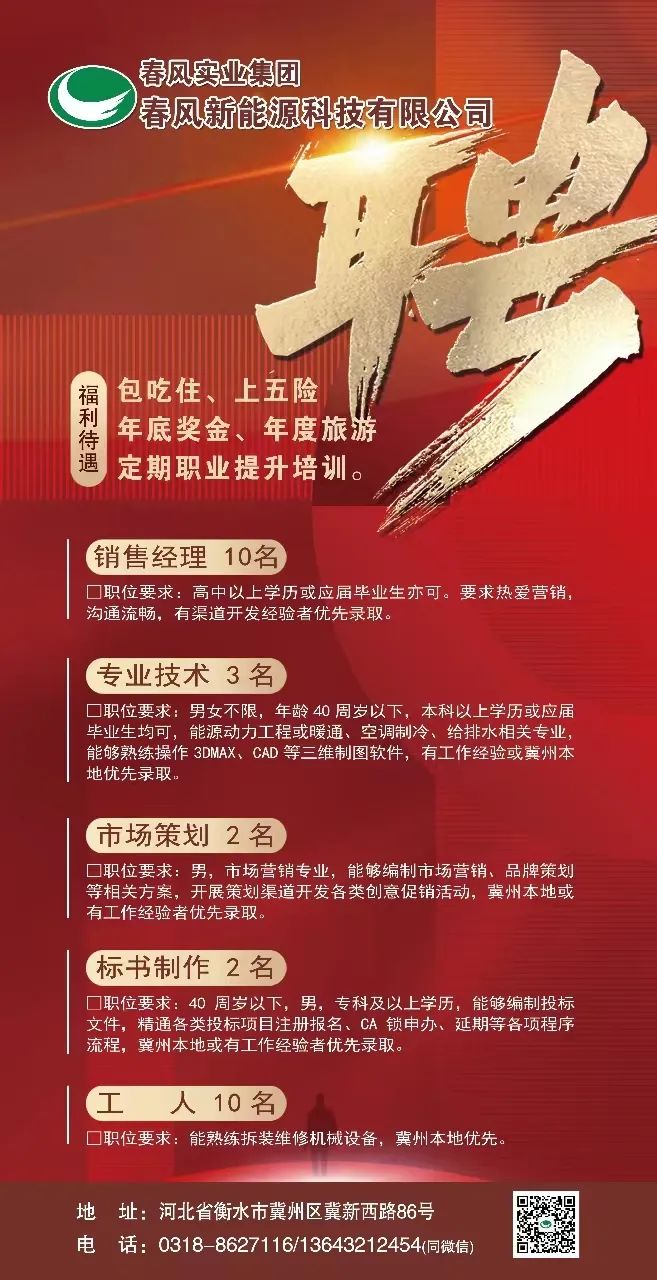 聯(lián)系方式:15203282583 地址:冀州區(qū)冀新西路86號圣春辦公大樓